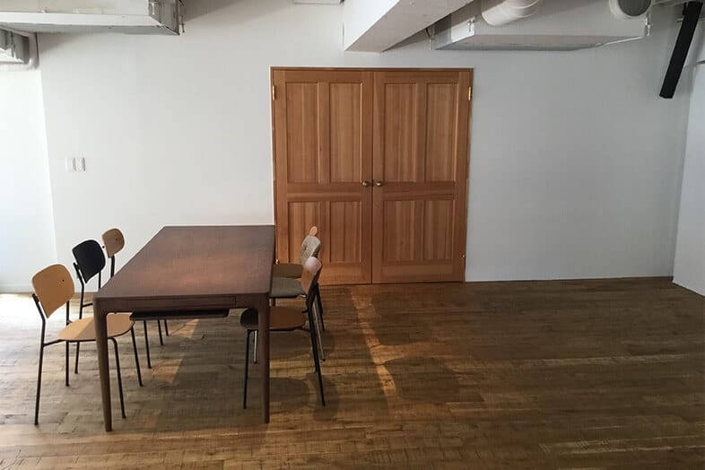白を基調にしたスタジオで、床一面の足場板は迫力満点です。南西に窓があるため、お昼位から夕方まで自然光がキレイに入ります。