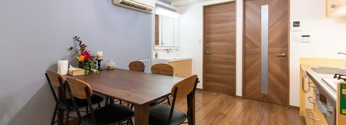 1Fはダイニングテーブルとキッチン、2Fは洋室、3Fはリビング + 洋室という構成ですので各フロアで区分けされているのも特徴です。