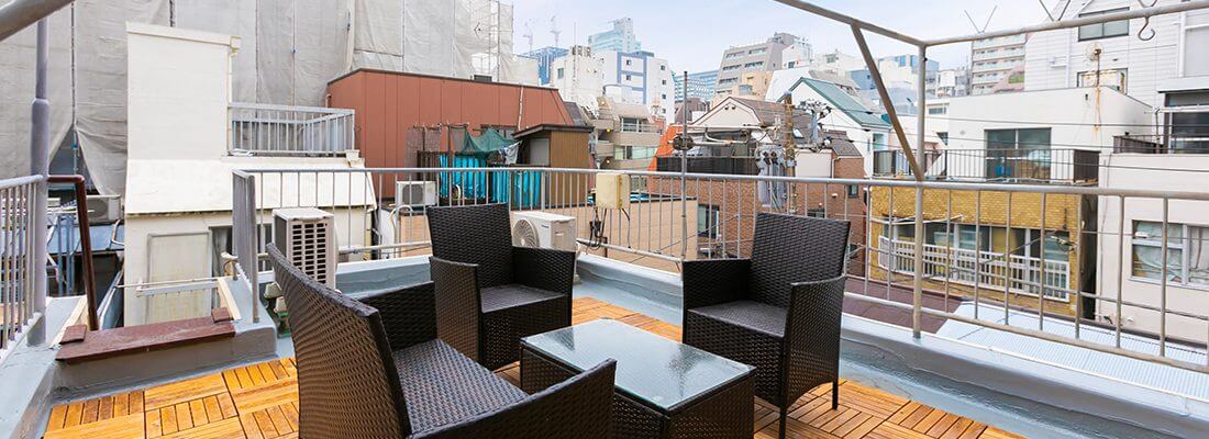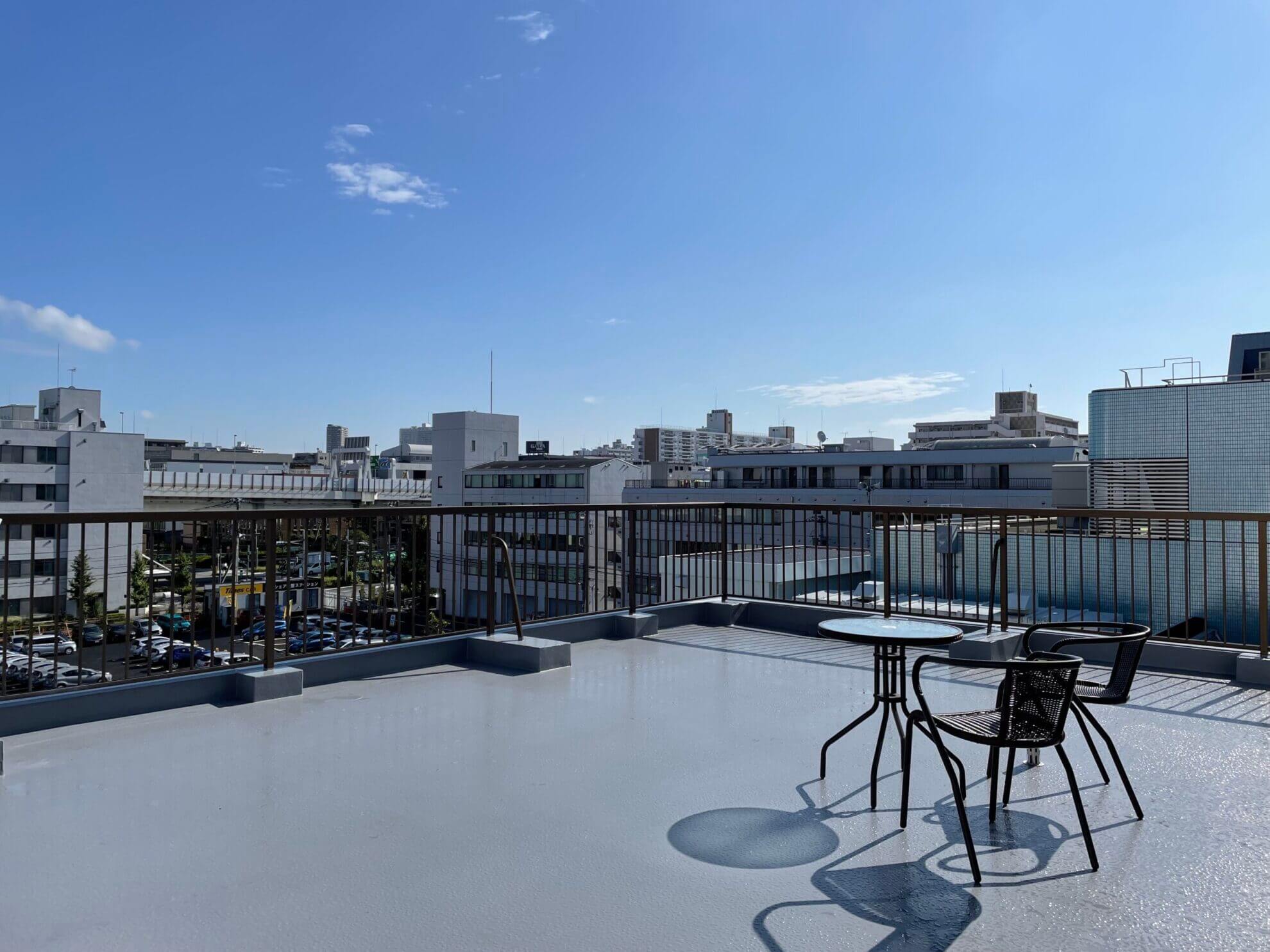 上野近郊の街並みが見渡せる屋上スペースでは、空抜けのカットを撮影することができます。