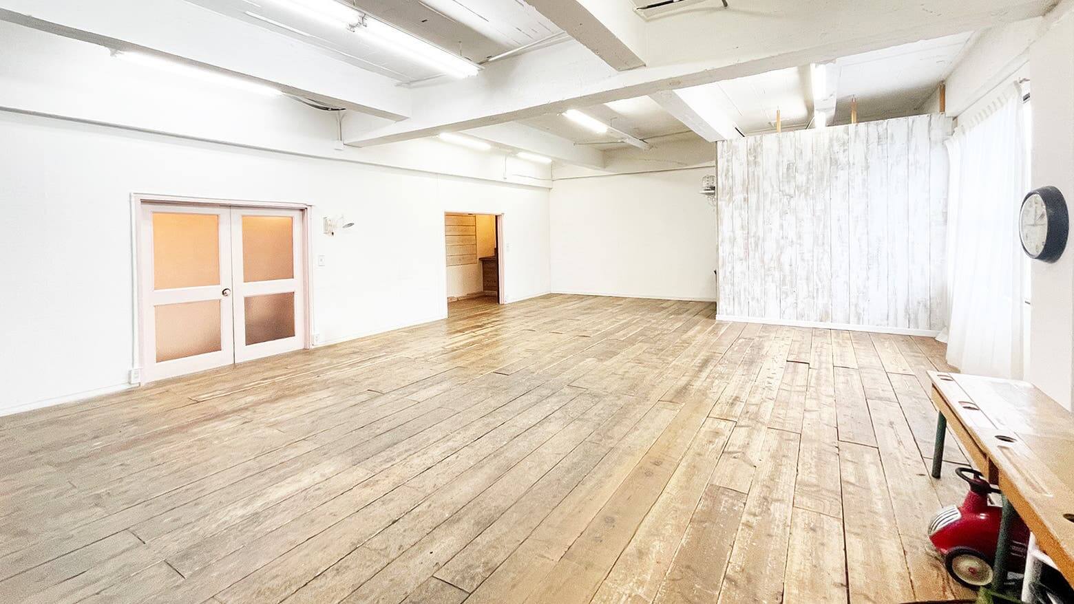 新宿エリアに位置する、3面の窓から差し込む豊富な自然光が特徴で、シャビーシックな雰囲気の明るいスタジオです。